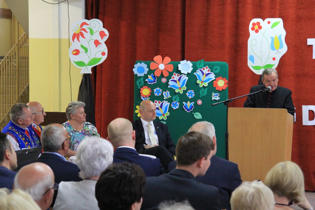Przemawia Laureat Medalu STA – ks. prałat Daniel Nowak – związany z Rodziną Piaśnicką. Fot. Żaneta Janicka