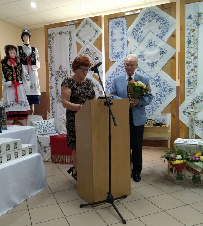 16 września br. w Gminnym Domu Kultury w Linii odbyła się uroczystość Jubileuszu 25-lecia Wojewódzkiego Konkursu Haftu Kaszubskiego połączona z finałem tegorocznego konkursu i otwarciem wystawy wyróżnionych prac. Poza liczną grupą nagrodzonych hafciarek na uroczystość przybyli m.in. prezes Zrzeszenia Kaszubsko-Pomorskiego Jan Wyrowiński, senator RP Kazimierz Kleina, wójt Gminy Linia Bogusława Engelbrecht oraz burmistrz Żukowa Wojciech Kankowski. Po powitaniu przybyłych przez dyrektor Gminnego Domu Kultury Kamilę Soroko nastąpiło wręczenie nagród laureatom oraz podziękowania dla osób, instytucji i firm szczególnie zaangażowanych przez 25 lat trwania Konkursu oraz promowanie pięknej sztuki haftu kaszubskiego. Niezwykle ważną i zasłużoną postacią w tym gronie był Edmund Szymikowski – główny inicjator Konkursu w Lini, mający ogromny dorobek w promowaniu haftu kaszubskiego. Podziękowania otrzymała także Danuta Niechwiadowicz, która od wielu lat prowadzi zajęcia kaszubskiej złotnicy w Kaszubskim Forum Kultury w Gdyni.