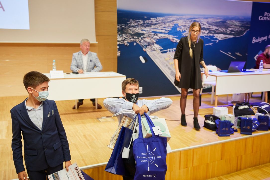 Blisko dwugodzinne rozgrywki w obu kategoriach zakończyła ceremonia wręczenia nagród dla wszystkich finalistów. O prezenty dla laureatów zadbali niezawodni partnerzy konkursu. Organizatorzy dziękują firmie Invest Komfort, która ufundowała laureatów I, II i III miejsca kamery GoPro, głośniki bezprzewodowe i opaski huawei band. Wyższej Szkole Bankowej, która poza nagrodami ufundowała fotoreportaż z finału. Zarządowi Morskiego Portu Gdynia SA za nagrody i upominki, które otrzymywali laureaci.