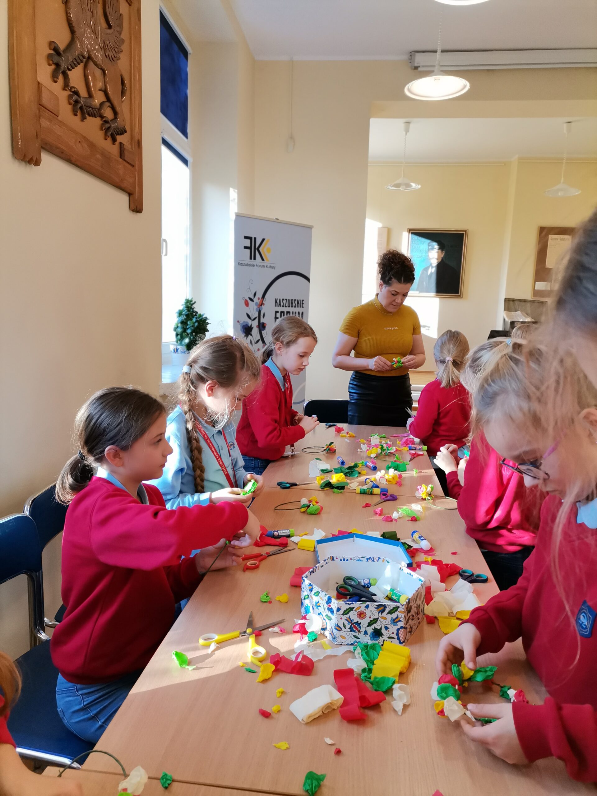 16 listopada w Kaszubskim Forum Kultury odbyły się warsztaty tworzenia wianków z bibuły. Zajęcia odbyły się w ramach cyklu czterech spotkań warsztatowych związanych z propagowaniem kultury kaszubsko-pomorskiej „Etnowarsztaty” realizowanych przez KFK i Radę Dzielnicy Kamienna Góra. Zajęcia poprowadziła Małgorzata Bądkowska ‒ absolwentka Akademii Sztuk Pięknych w Gdańsku. W zajęciach brały udział dzieci z Zespołu Szkół Katolickich im. Jana Pawła II w Gdyni wraz z nauczycielami i opiekunami. Cykl zajęć „Etnowarsztaty” jest dofinansowany przez Miasto Gdynię.