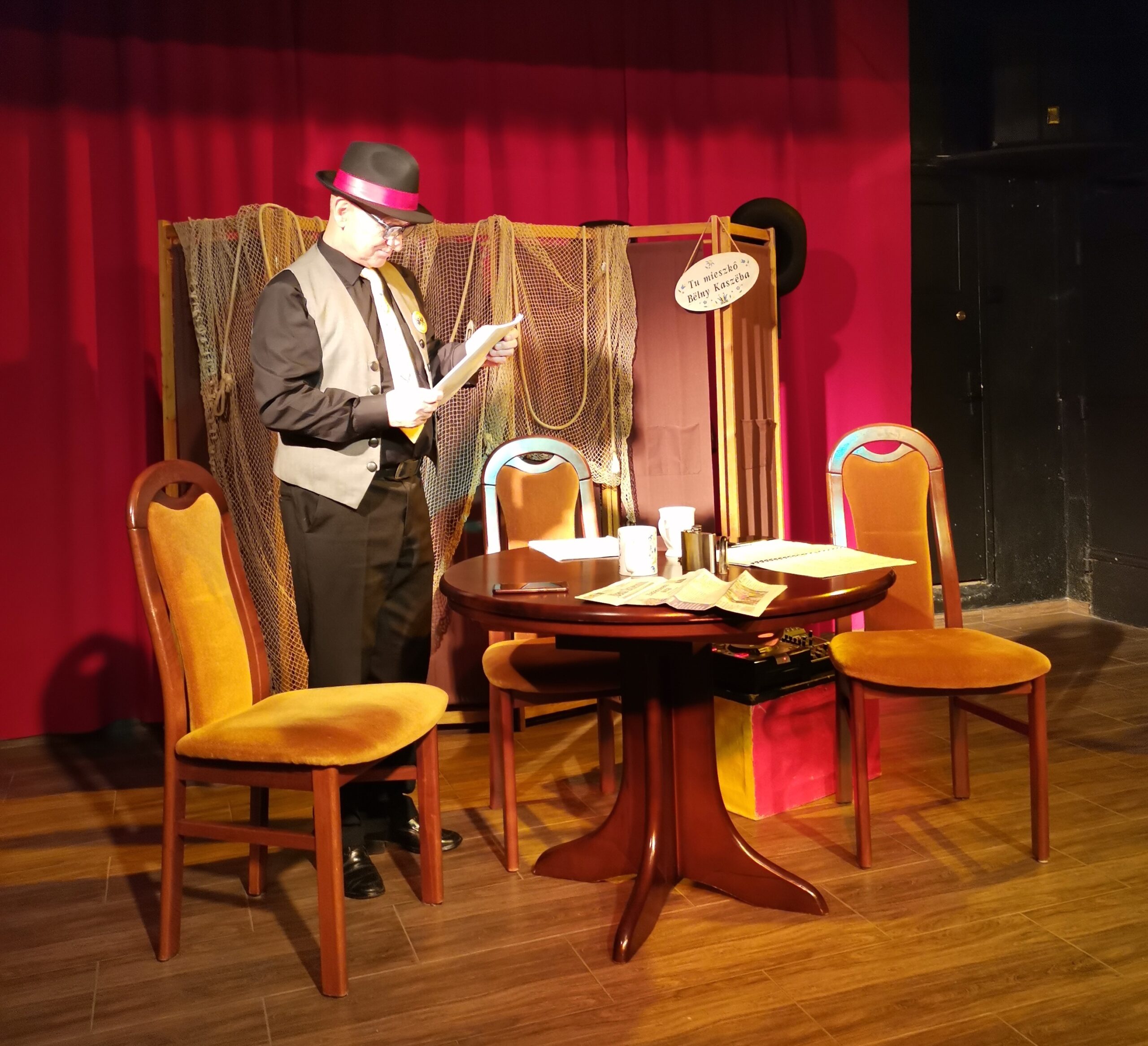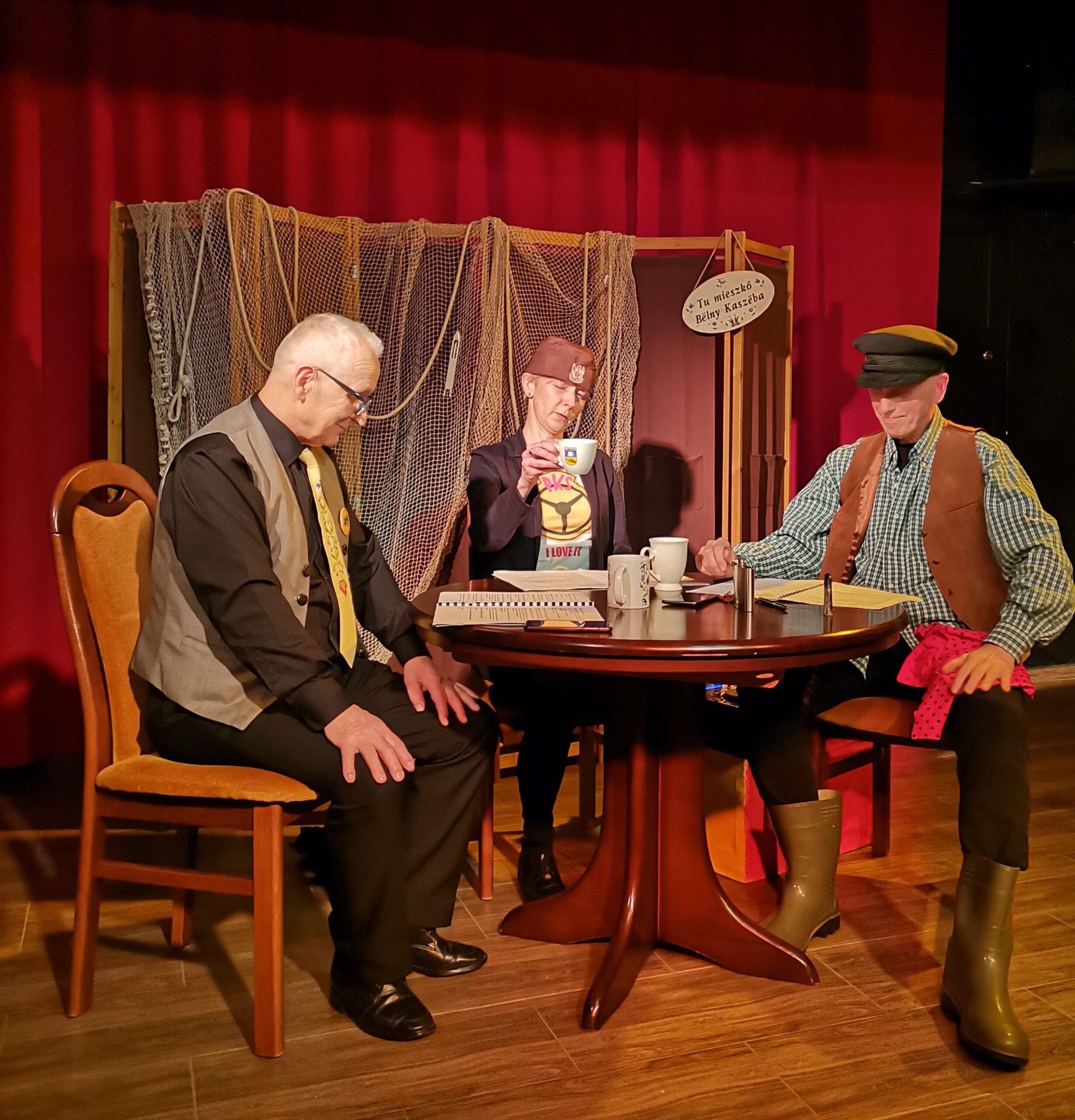 Następnie ropoczął się spektakl. Był to dramat komiczny w formie teatru przy stoliku. Obok Anny Miller i Ludwika Lubieńskiego wystąpił Czesław Aleksak, który od kilku lat uczęszcza na zajęcia języka kaszubskiego w Forum. Sztuka bardzo spodobała się widzom, którzy docenili ciekawy scenariusz, grę aktorów, scenografię i piękną kaszubszczyznę.