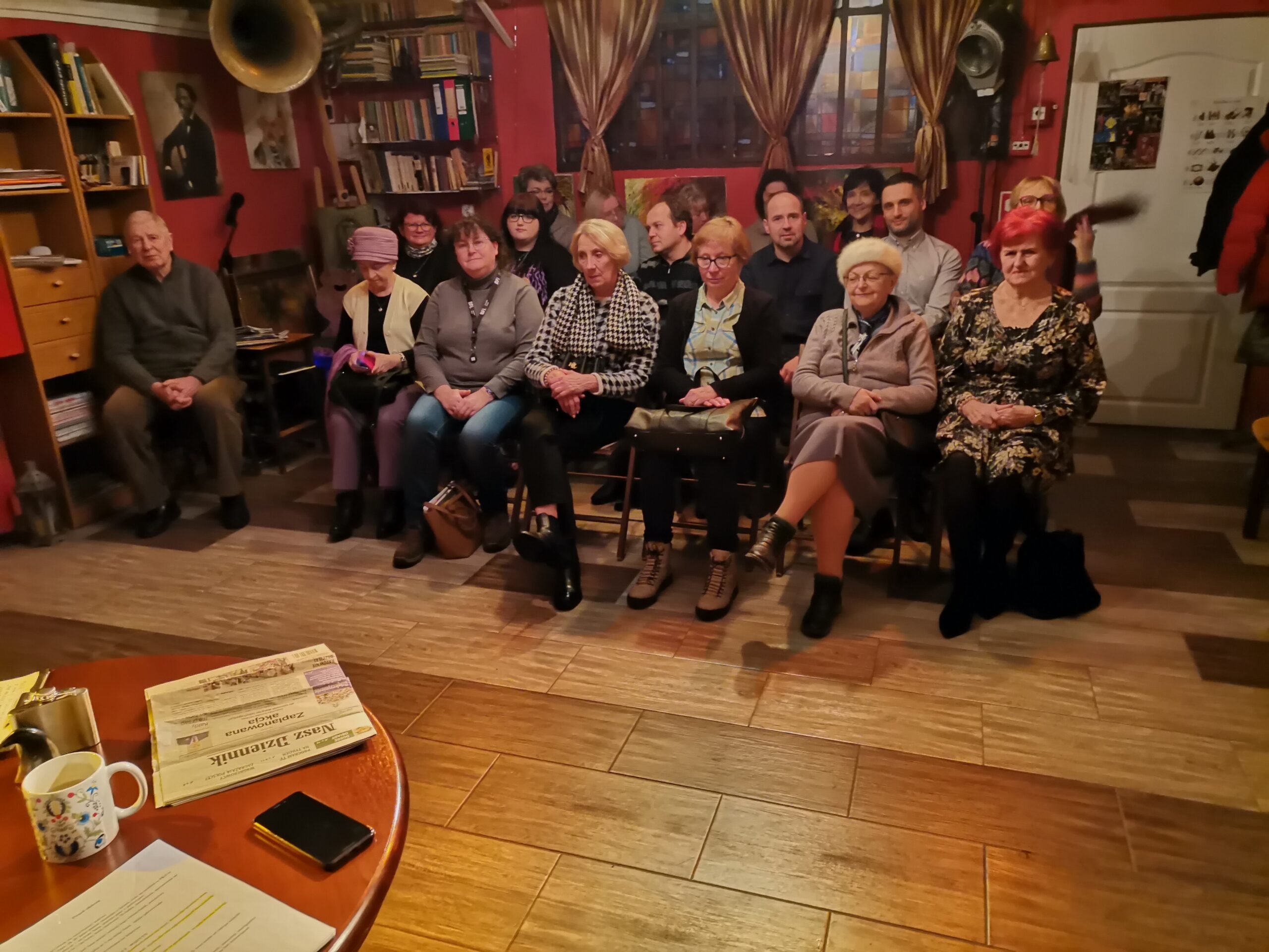 Spotkanie rozpoczął Ludwik Lubieński (również nasz kursant!), który przedstawił krótką historię teatralnej przygody Maszoperii z historią, kulturą, teatrem i językiem Kaszub.