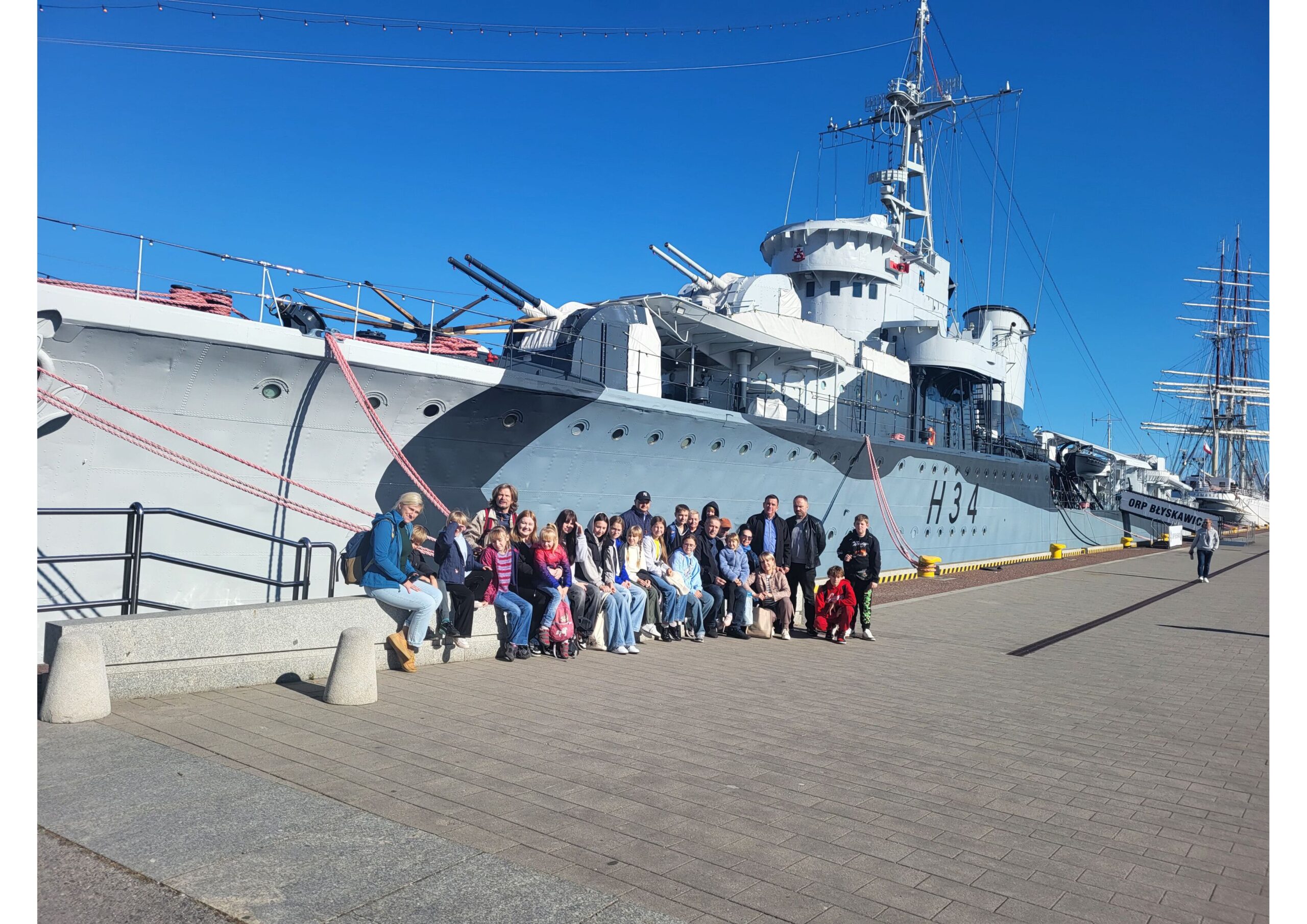 W Muzeum MW uczestnicy wycieczki otrzymali sporą dawkę wiedzy o historii Gdyni i Marynarki Wojennej, którą przekazał prezes KFK Andrzej Busler. Następnie grupa udała się na Molo Południowe, przy którym zacumowana jest ORP „Błyskawica” oraz żaglowce: „Dar Pomorza” i „Dar Młodzieży”.