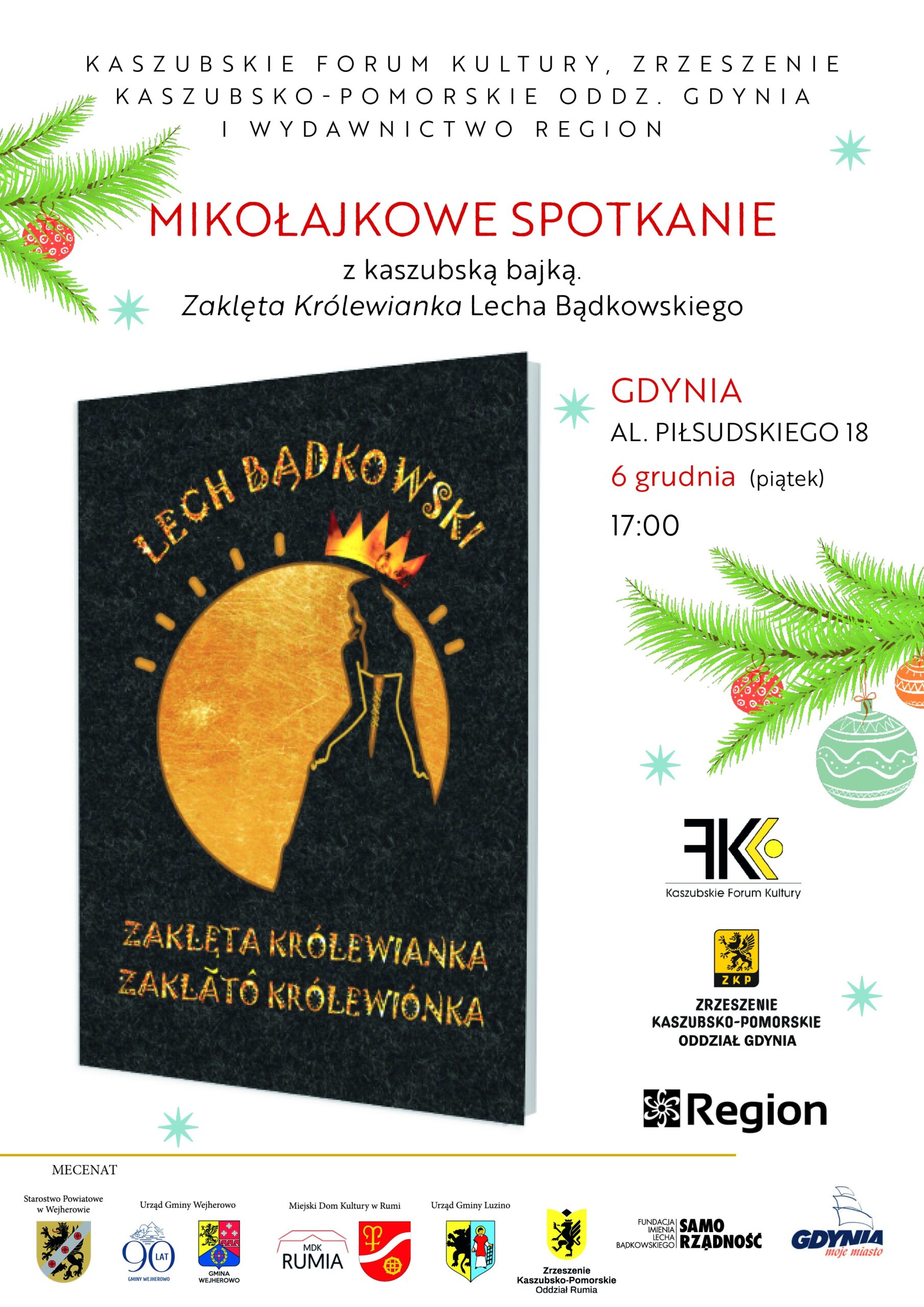 Serdecznie zapraszamy na mikołajkowe spotkanie z kaszubską bajką, w ramach którego odbędzie się promocja książki Zaklęta Królewianka Lecha Bądkowskiego. Dolmaczënk na kaszëbsczi jãzëk przërechtowôł Klebbów Matis.
