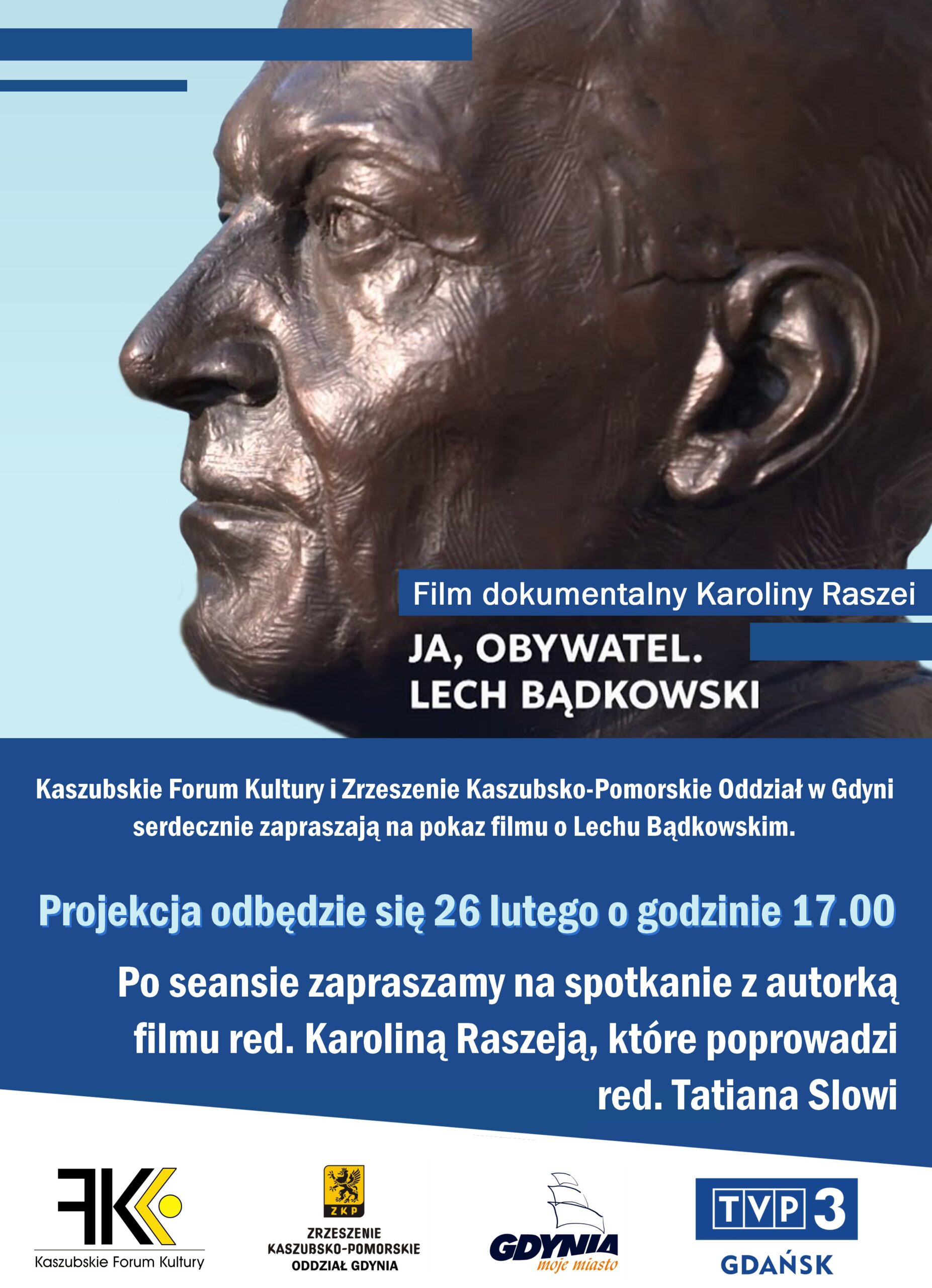 Serdecznie zapraszamy na pokaz filmu dokumentalnego Ja, Obywatel. Lech Bądkowski, który odbędzie się 26 lutego o godzinie 17.00 w siedzibie Kaszubskiego Forum Kultury przy al. Piłsudskiego 18 w Gdyni. Po seansie zapraszamy na spotkanie z autorką filmu red. Karoliną Raszeją, które poprowadzi red. Tatiana Slowi.