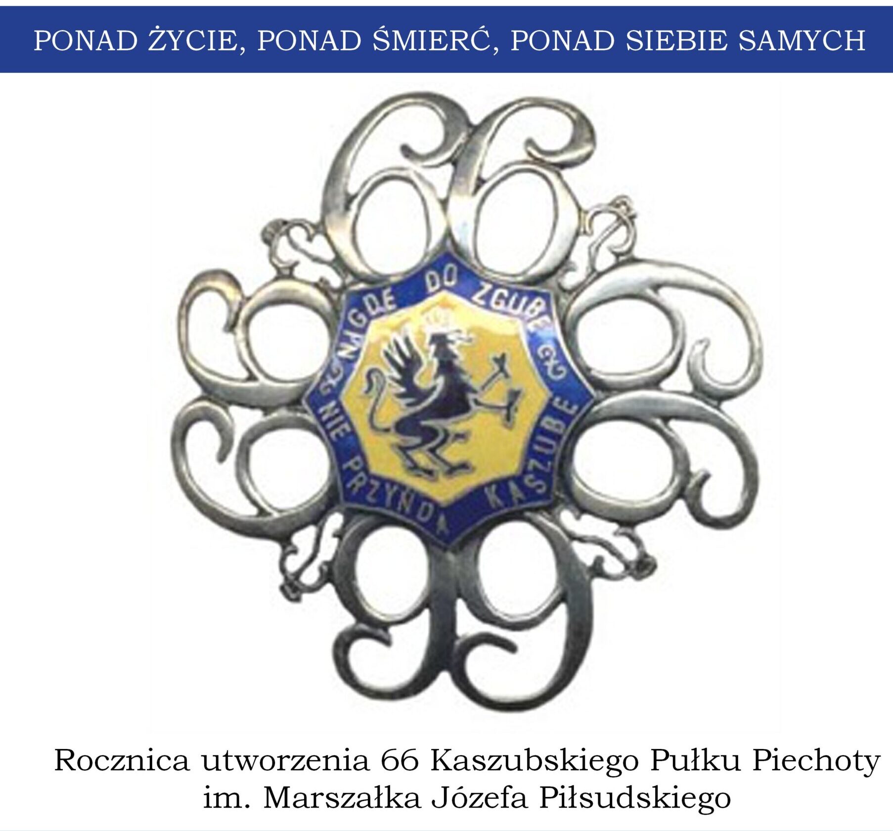Ponad życie, ponad śmierć, ponad siebie samych – to motto legendarnego 66 Kaszubskiego Pułku Piechoty im. Józefa Piłsudskiego.