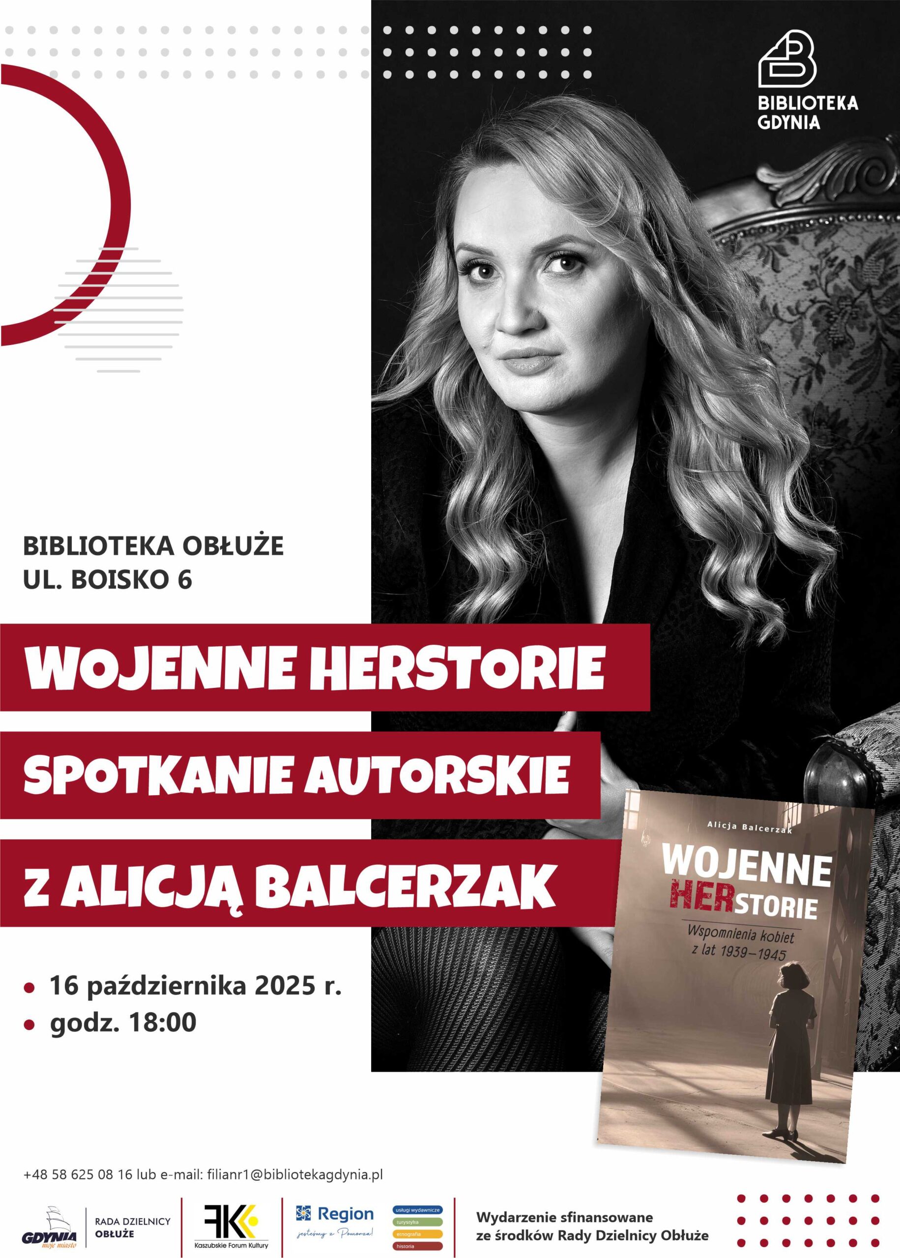 Kaszubskie Forum Kultury oraz Wydawnictwo Region zapraszają na przedostatnie już w tym roku spotkanie autorskie z Alicją Balcerzak. Promocja książki „Wojenne herstorie. Wspomnienia kobiet z lat 1939-1945” odbędzie się 16 października w Bibliotece Obłuże w Gdyni. Zapraszamy na godz. 18:00.