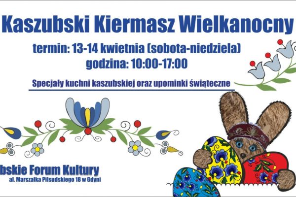Kaszubskie Forum Kultury oraz Gdyński Oddział Zrzeszenia Kaszubsko-Pomorskiego zapraszają na Kaszubski Kiermasz Wielkanocny rękodzieła, etnodesignu oraz…